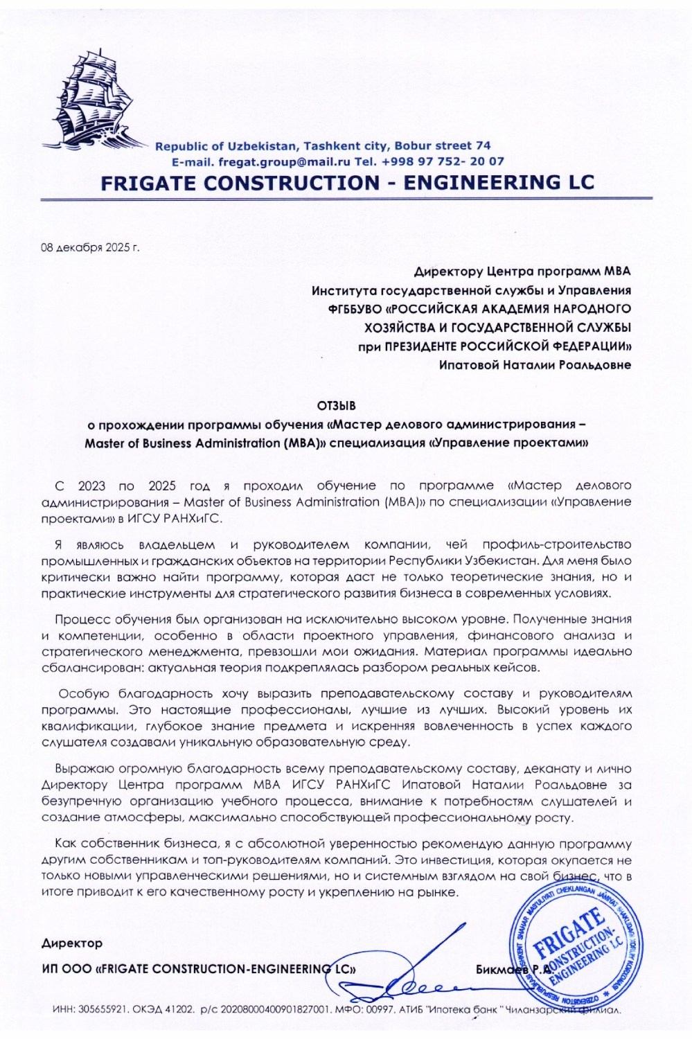 НАСДОБР – Национальный аккредитационный совет делового и управленческого образования – профессионально-общественная аккредитация, 2015, 2019 и 2024 гг.