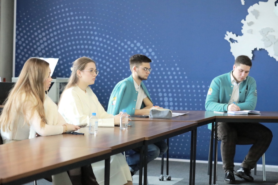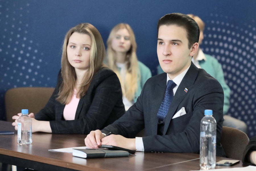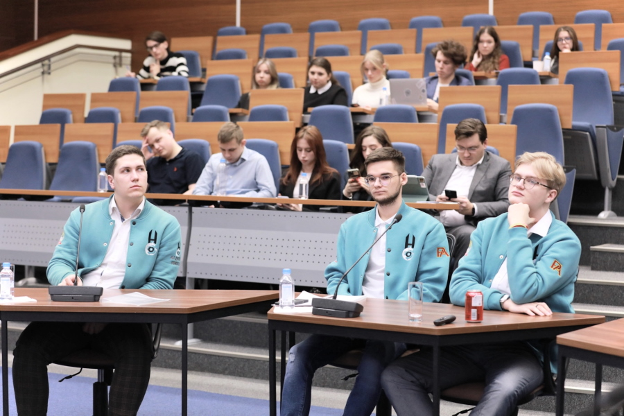 Участники «Движения Первых» Академии, студенты программы ИГСУ «Цифровое государство» Михаил Фомин и Дарья Заболоцкая и студент программы «Общественные связи и медиакоммуникации в государственном и муниципальном управлении» Данила Морозов представили научный проект «Цифра.Первые».