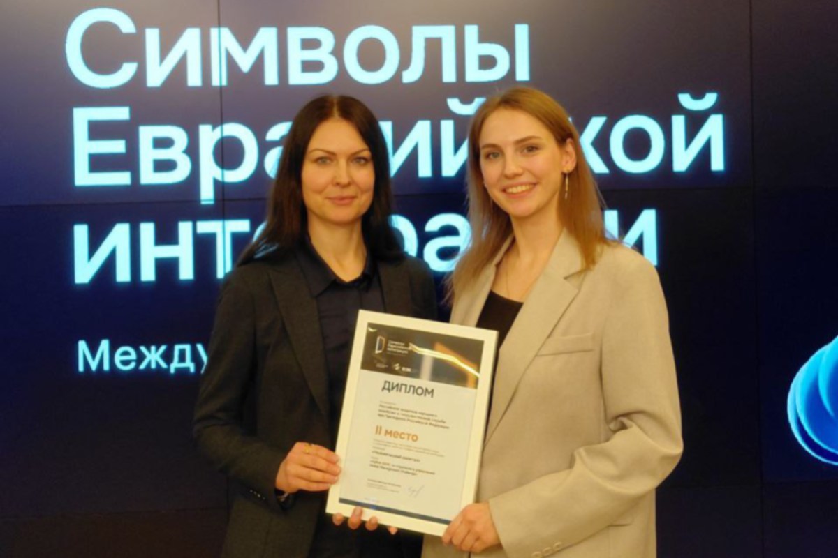 Проект Президентской академии «Кубок ЕАЭС по стратегии и управлению Global Management Challenge» занял 2 место в номинации «Человеческий капитал», одной из самых популярных по числу заявок. Награду представителям Института государственной службы и управления (ИГСУ) Президентской академии Дарье Ясниковой и Алле Тупиковой вручил Директор департамента макроэкономической политики Евразийской экономической комиссии Алексей Ведев.