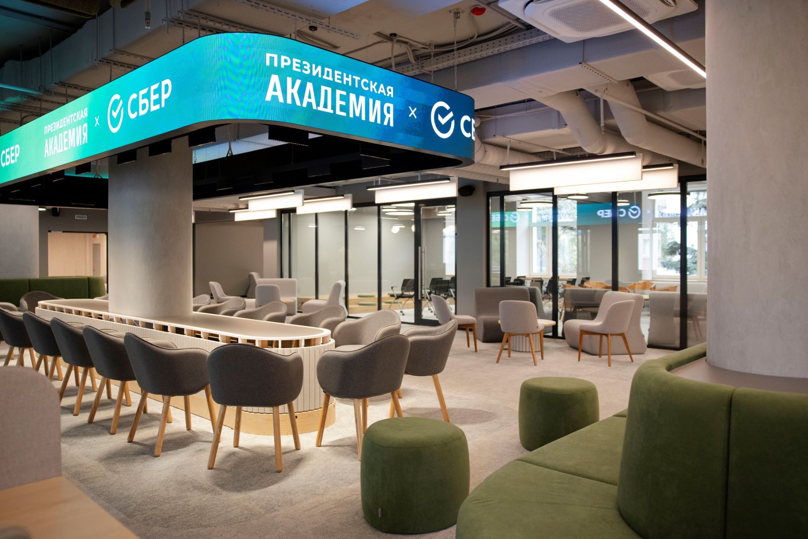 В Президентской академии открылся флагманский коворкинг Сбера «Гига Клуб» – инновационное образовательное и креативное пространство с переговорными, капсулами тишины, фуд-кортом и профессиональной студией для записи подкастов. Его площадь превышает 600 кв. метров. Проект коворкинга был реализован с учетом пожеланий сотрудников и студентов Академии – именно такой формат выбрало большинство по итогам голосования.