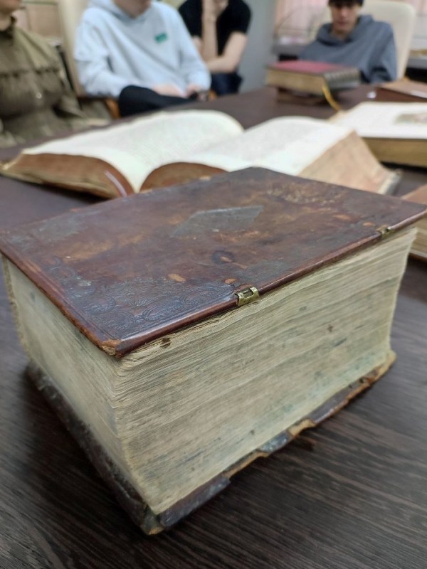 Студенты получили представление о том, как датируются источники на бумажных носителях, научились переводить в современный формат буквенную датировку самой старой в библиотеке книги XVII века, с интересом рассматривали бумагу, переплеты и пометки, оставленные рукой владельца или читателя. Многие впервые увидели филиграни – водяные знаки, которые видны на просвет на страницах старинных книг.