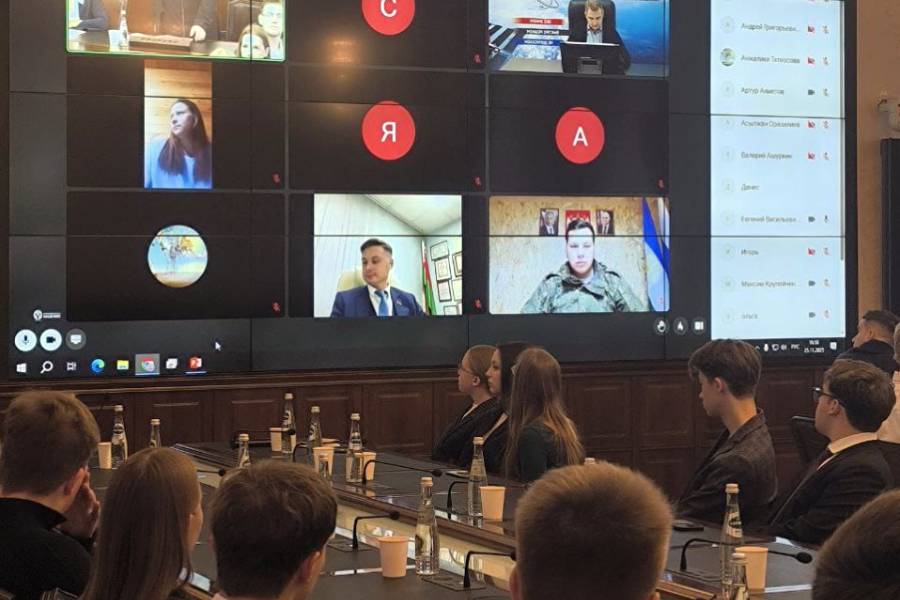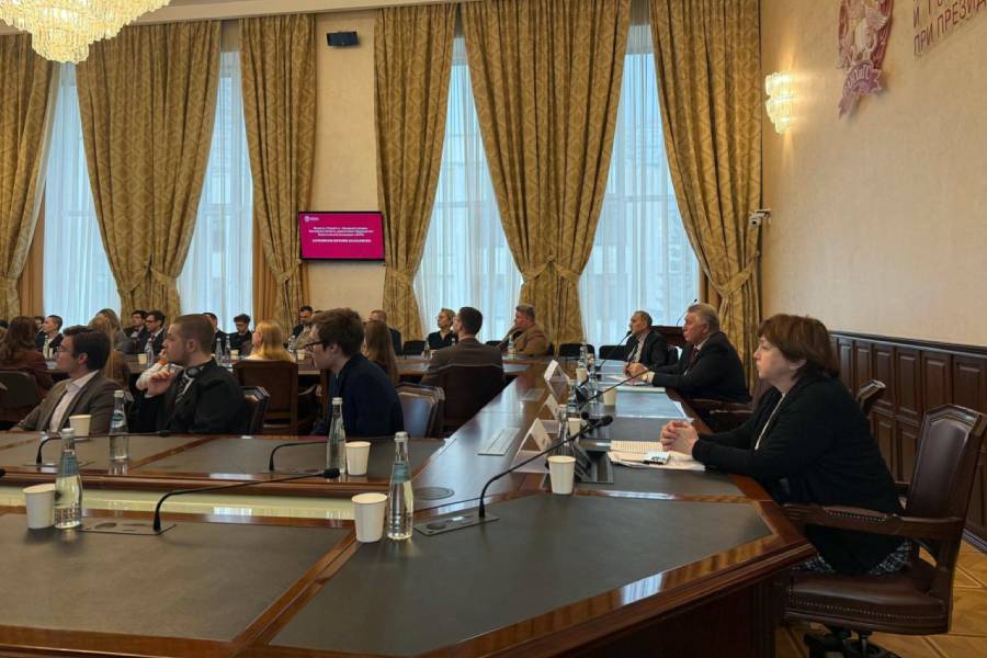 В диалоге приняли участие проректор Академии Алексей Колесников, заместитель директора ИГСУ Юлия Гончарова, декан факультета государственного и муниципального управления ИГСУ Елена Бешкинская, бакалавры и магистранты этого факультета и слушатели новой программы повышения квалификации «Инклюзивная межпарламентская интеграция для Большого евразийского партнерства».