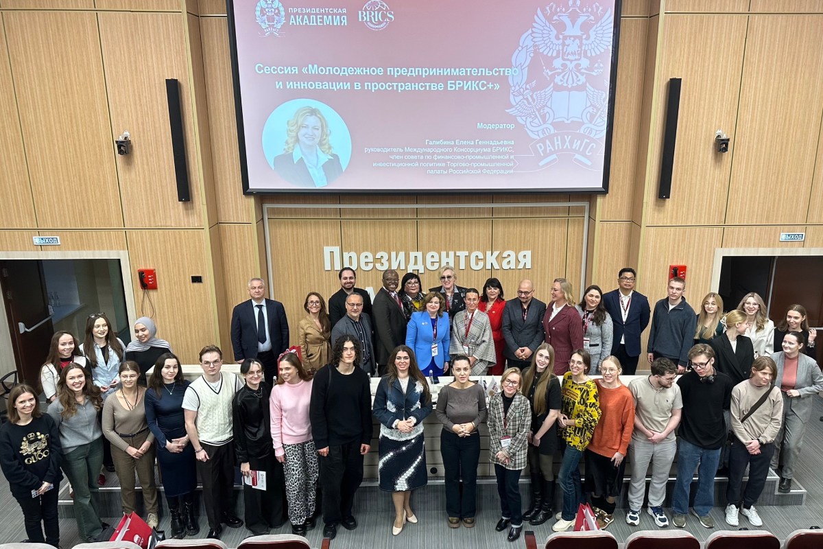 Модерировала сессию руководитель Международного консорциума БРИКС, член Торгово-промышленной палаты (ТПП) России, выпускница Президентской академии Елена Галибина.