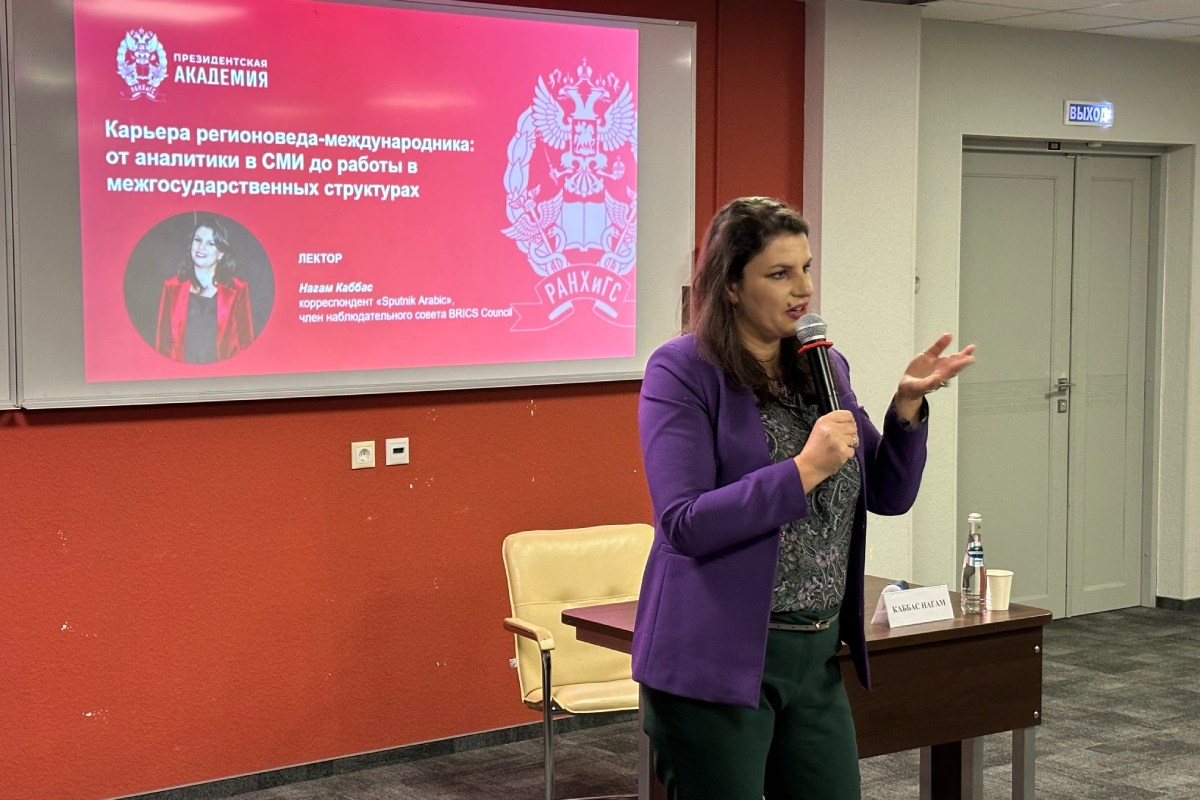 В заключительный день Новогоднего фестиваля БРИКС+ прошла интерактивная лекция о профессиональном пути международника. Перед студентами выступила корреспондент «Sputnik Arabic», член наблюдательного совета BRICS Council Наггам Каббас, осветив тему карьеры регионоведа-международника: от аналитики в СМИ до работы в межгосударственных структурах.