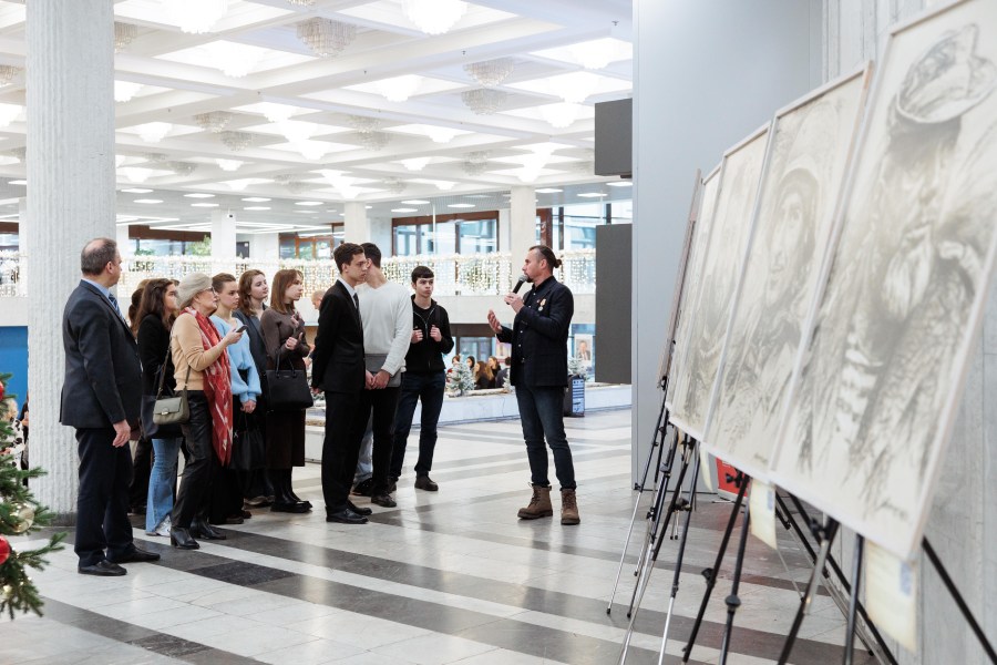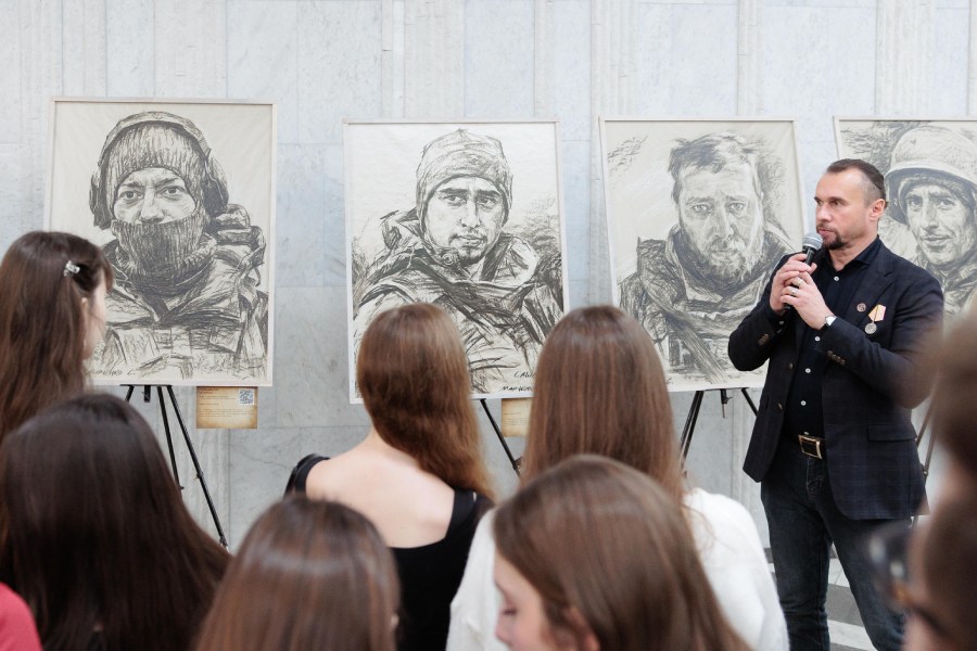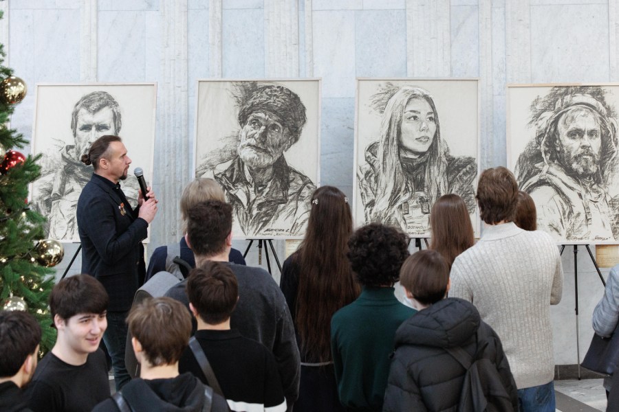 Выставка «Уголь Донбасса» – серия графических портретов участников СВО и жителей региона, созданных художником Сергеем Марченко – побывала на многих российских и зарубежных площадках, а ее автор отмечен наградами Министерства обороны России и МВД России. Организаторами события в Президентской академии (РАНХиГС) стали Ветеранская организация имени Героя Советского Союза А.П. Маресьева и отделение Движения Первых.