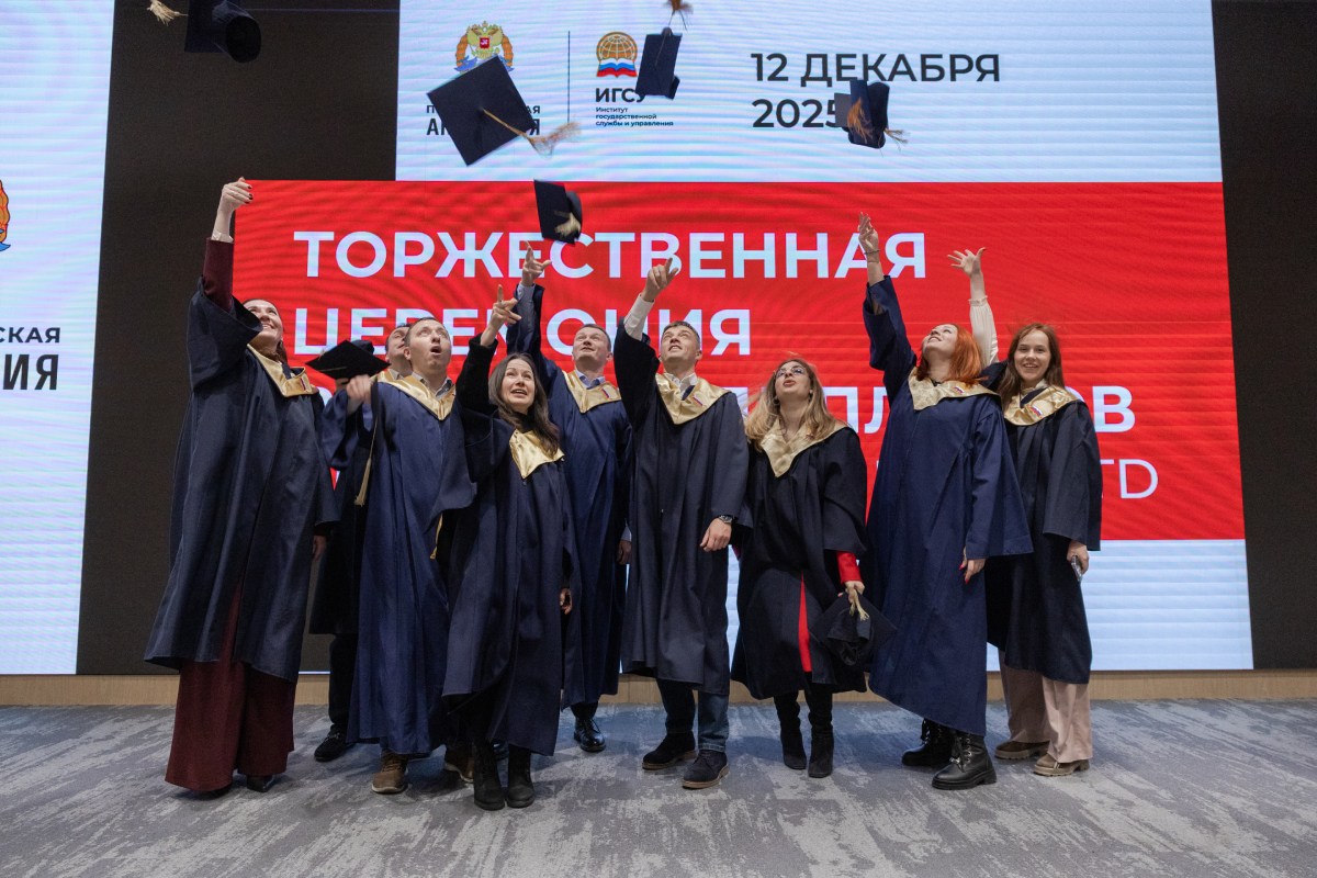 «Мы надеемся, что вы будете высоко нести высокое звание выпускников Президентской академии», – завершила директор Центра программ МВА Наталия Ипатова торжественную часть вечера, и по традиции в воздух взлетели академические шапочки-конфедератки выпускников.